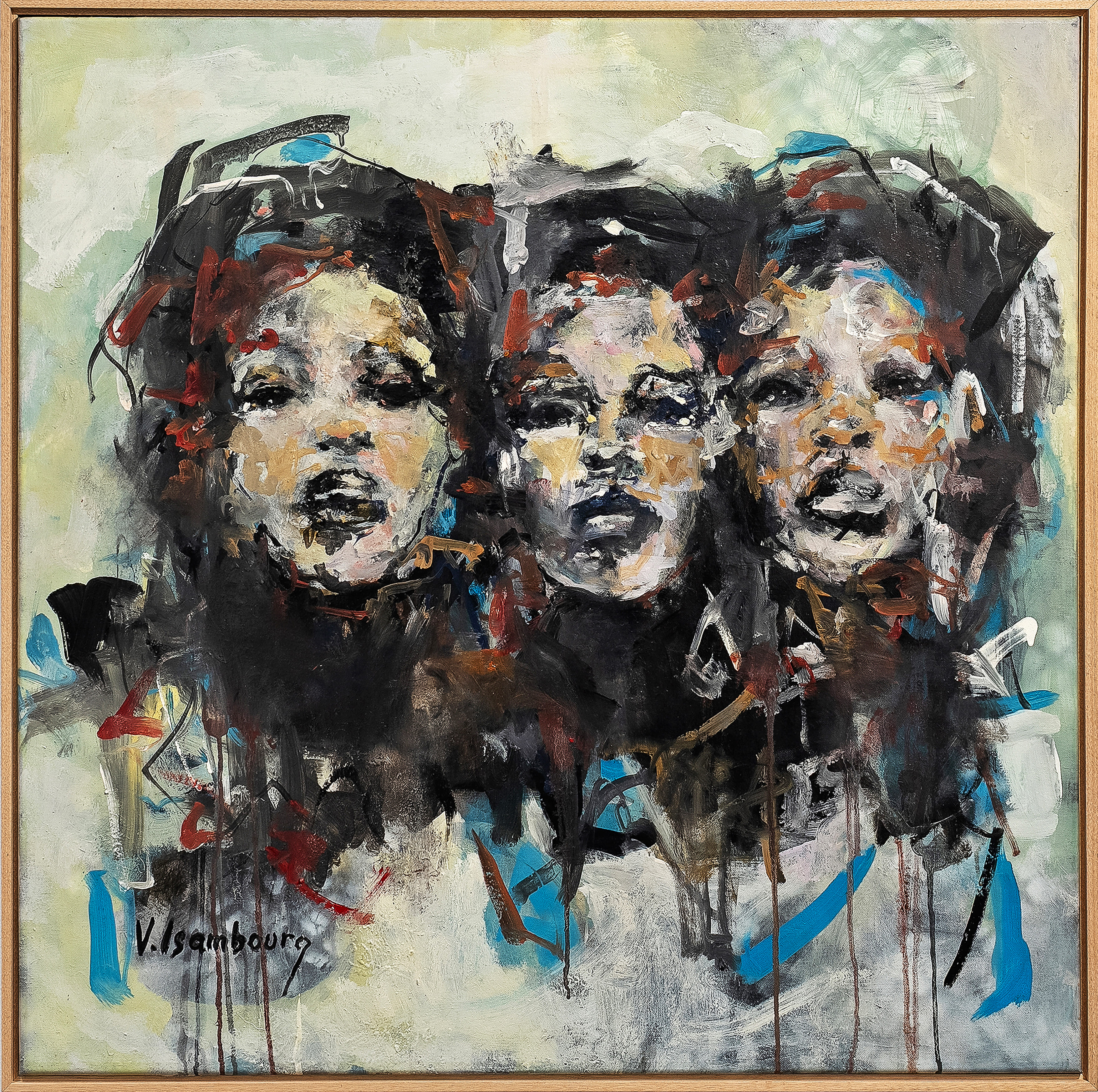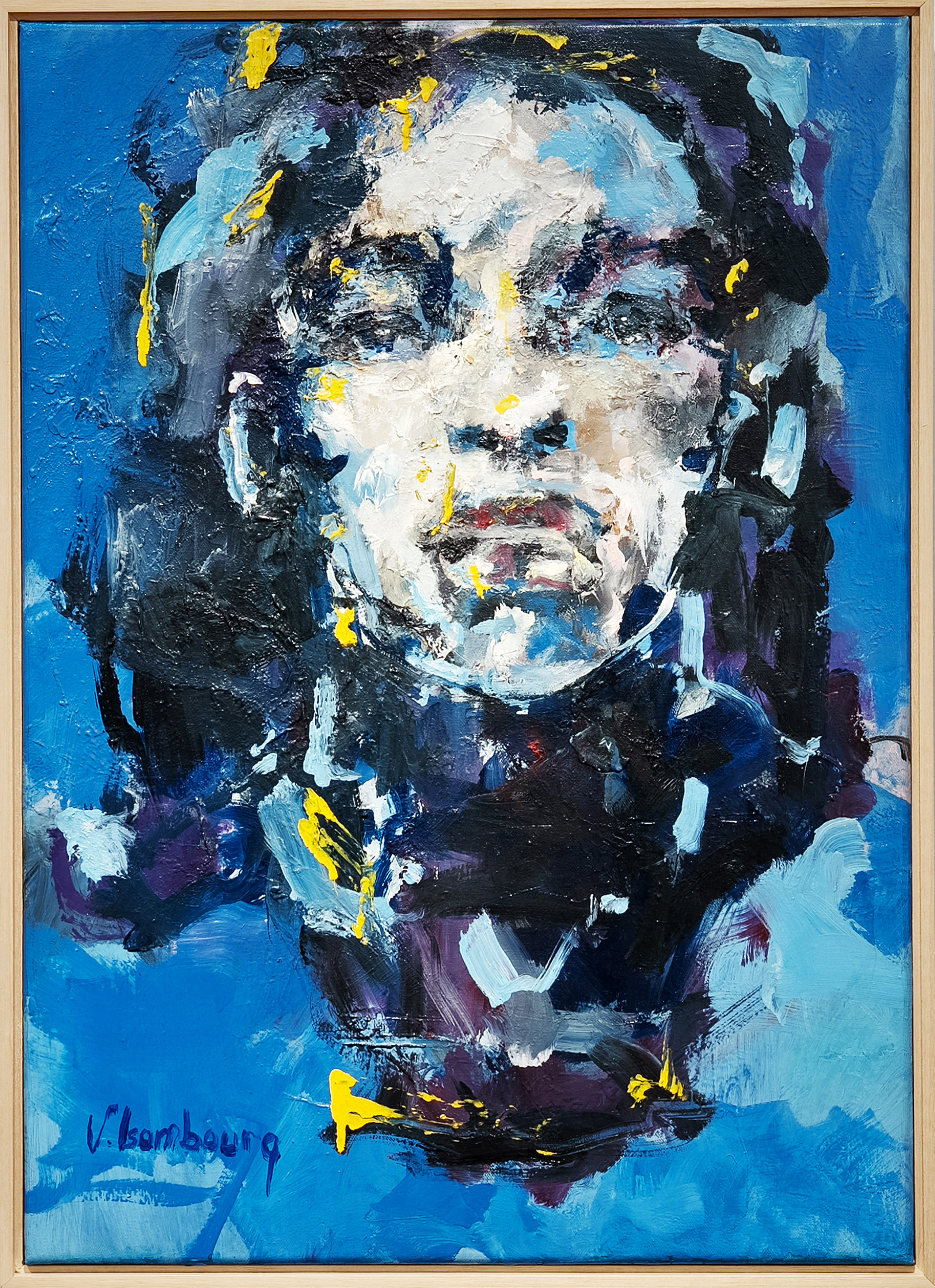 In Blue, Vincent Isambourg presents a portrait of an African woman immersed in a field of deep tonal intensity. Through layered oil paint and expressive brushwork, the composition emphasises presence and psychological depth, allowing colour to shape both form and emotional resonance.